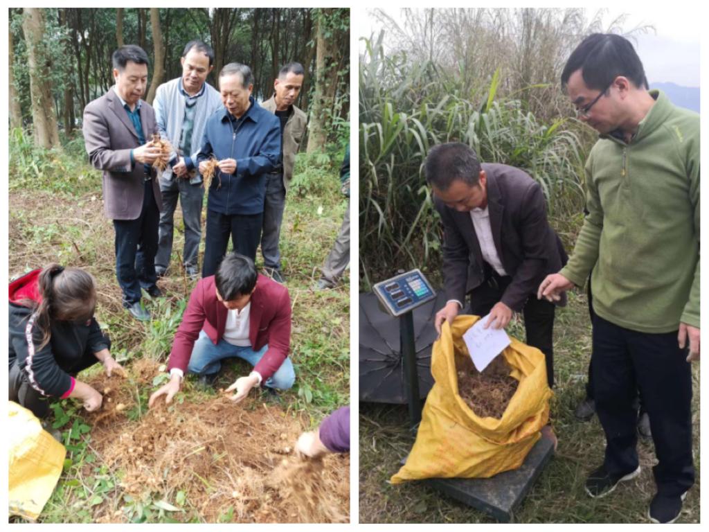 测产期间朱培林研究员陪同参加,将挖出的鲜品黄精进行称重并拍照。喻志标教授还询问了今年来黄精的产量与价格,对采挖现场进行拍照。现场还讨论了关于黄精的产业发展问题,以及如何在保证黄精质量的同时增加产量等问题。