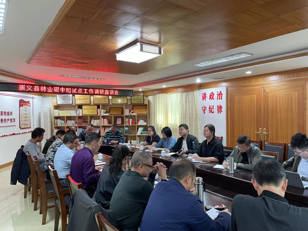 调研组实地调查了碳汇林树种组成、林龄结构、立地条件、经营管理等情况,并在崇义、兴国和武宁三县林业局召开座谈会,听取试点县工作领导小组在林业碳中和试点工作进展情况、典型案例、存在问题和下一步工作打算的有关情况介绍,详细了解各试点县的需求与困难,针对我省林业碳中和管理服务平台建设、碳中和APP开发需求、林业碳汇计量规范、消纳模式进行了深入交流。