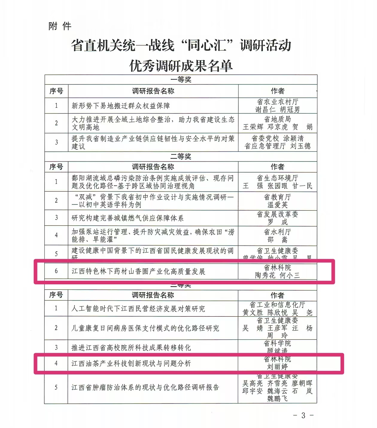 近日,省直机关工委印发《省直机关统一战线“同心汇”调研活动优秀调研成果的通报》,省林科院党外科研人员陶秀花、刘丽婷提交的调研成果报告分别荣获二等奖和三等奖,彰显了党外科技人才在林业产业服务中的使命担当。