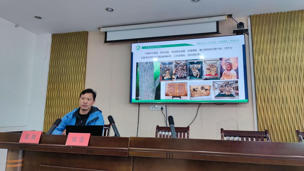 会上,项目主持人刘蕾就项目实施方案、目标任务、实施步骤及保障措施进行部署安排。支撑专家章挺围绕牛樟优良品系选育、无性繁育关键技术、规范化栽培管理、后期抚育管护等内容开展专题技术培训,系统讲解技术要点与实操规范,为项目落地实施提供坚实技术保障。