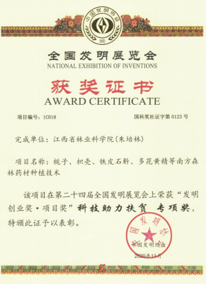 11月19日至21日,第二十四届全国发明展览会在佛山举办,我院森林药材(食品)科技创新团队“栀子、枳壳、铁皮石斛、多花黄精等南方森林药材种植技术”荣获“发明创业奖·项目奖”科技助力扶贫专项奖。
