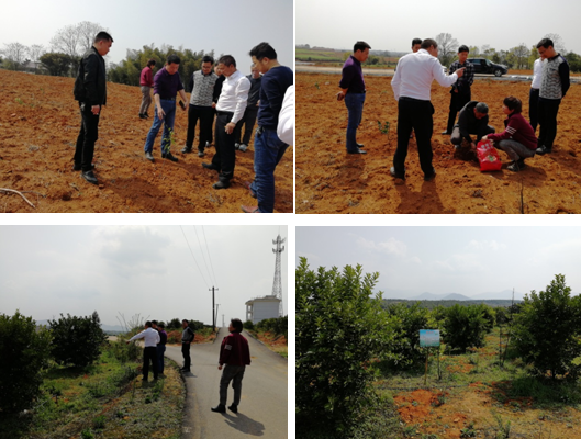 3月20日,江西省林科院法人中药材产业科技特派团朱培林、黄丽莉和李婷三位特派员,在樟树市林业局、昌傅镇相关负责人的陪同下,来到服务对象樟树市江枳壳农业发展有限公司的枳壳种植基地调研,与公司谢东贤董事长及基地管理与技术人员等一起交流新栽植枳壳情况,现场指导并提出当前管理建议。