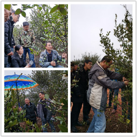 培训课结束后,广大学员与专家们深入探讨与互动。学员们针对油茶种植过程中出现的各种实际问题向专家请教,专家都一一进行了解答。油茶种植大户郭圩乡贯桥村村民陈健昌特别邀请专家们前往自家油茶种植基地进行现场把脉,科技特派团的专家们冒雨前往种植户基地进行现场教学指导。孙勇专家针对该种植户油茶栽植过密、目前基地结果少等问题提出了解救的办法,重点讲解了油茶修剪技术并做了现场示范,解决了种植户的燃眉之急,此次培训取得了良好的效果。