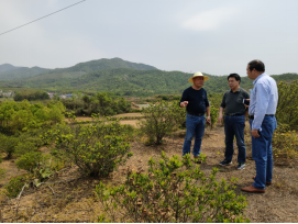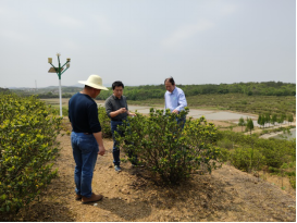 4月17日,江西省林科院中药材法人团团长朱培林、团员邓绍勇和九江市林业技术指导站朱峰站长应邀到湖口武山,为江西弘盛药业有限公司的栀子、芍药种植基地提供技术指导。在栀子种植基地,朱培林研究员对基地部分栀子树苗出现落叶、干枯现象的原因进行了剖析,详细讲解了栀子蛀杆虫害的防治方法及关键技术点,现场指导基地技术员及时对虫害枝进行清理,提醒基地技术员注意药剂防治中的用药禁忌及用药的关键时间节点,同时还对栀子施肥管理等提出了建议。