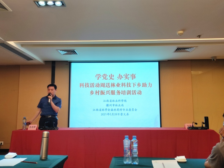 开班式由我院朱培林研究员主持,崇义县林业局刘德斌致欢迎词,赣州市林业局刘源祥调研员讲话指出当前举办培训活动的重要现实意义,提出了对培训学习的希望和要求,并诚意感谢省林科院药材特派团长期对赣州的支持。