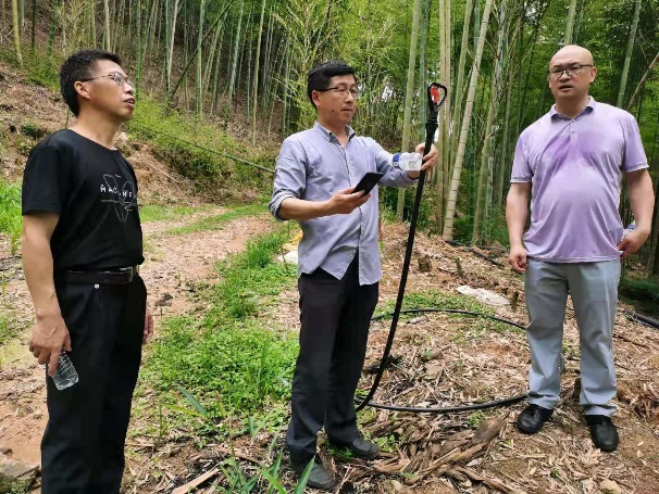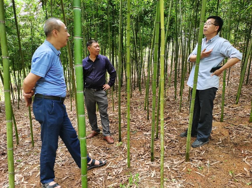 在崇义县章江农业科技发展有限责任公司毛竹林基地,竹科技服务团认真了解了基地的经营和管理情况,对存在的毛竹偏小、竹林结构不合理等问题给予技术指导,提出水肥一体灌溉施肥、合理留笋养竹、加强林下植被管理等具体经营管理措施。