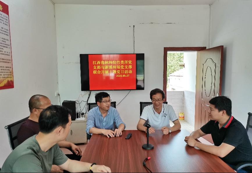 活动期间,院竹类所党支部与新溪林场党支部联合开展“学党史,强党建,办实事”主题党日活动,双方分享了党史学习教育开展以来在“我为群众办实事”实践活动中的经验做法,并就党支部标准化规范化建设进行了深入交流。座谈会后,竹科技服务团来到林场经营的苦竹林基地,建议通过人工促进方式进一步提高苦竹笋产量,并现场传授砍杂、竹林结构调整和垦覆施肥等技术要点。