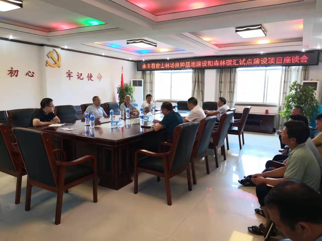 服务团一行首先来到永丰县官山林场调研并组织座谈会,听取负责人介绍林场资源情况以及森林碳汇试点建设项目实施方案编写中遇到的问题,详细了解官山林场国家良种基地建设经营情况。服务团专家针对碳汇试点建设项目实施方案要求,对具体研究内容进行了落实,对良种基地建设、种子产量和质量提高等方面给予了技术性指导。并实地查看了国家枫香楠木良种基地,就密度调控技术进行现场指导,同时与林场科技人员针对良种申报等问题现场进行了探讨交流,并提出了建设性意见。