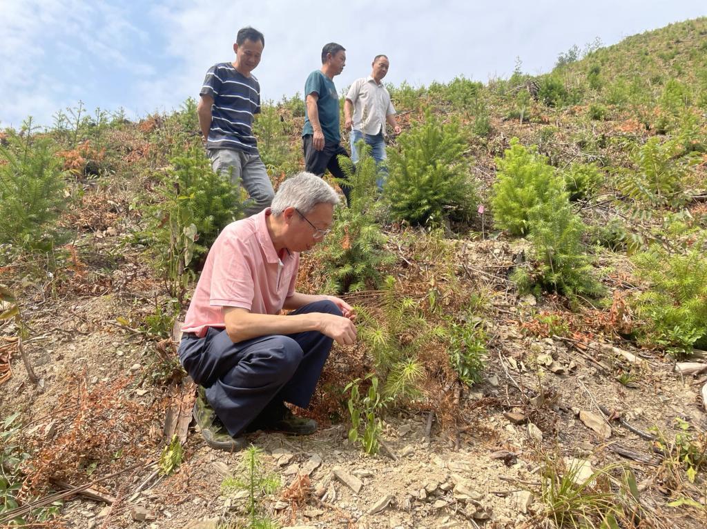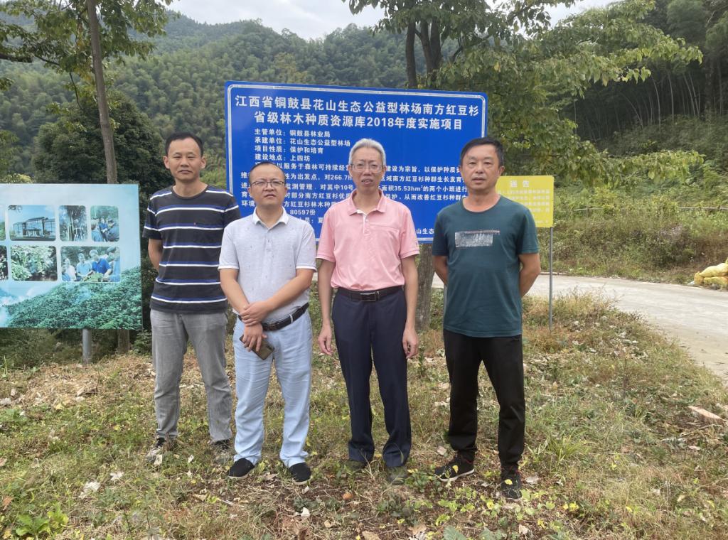 特派团一行首先来到铜鼓县花山林场,深入了解南方红豆杉省级种质资源库保存情况及后续的经营管理情况,对后期红豆杉种质资源库建设、优树资源保护及测定评价等提出了具体建议和措施。随后,现场查看了在港口林场今年营建的杉木测定林和青冈测定林的生长情况,持续干旱天气下杉木林目前保存还好,但长势明显偏低;青冈试验林影响较大,目前已出现叶片灼伤、干死等情况,建议在后期管理过程中应加强保水、保湿处理的同时,加强抗性指标的观测与研究。