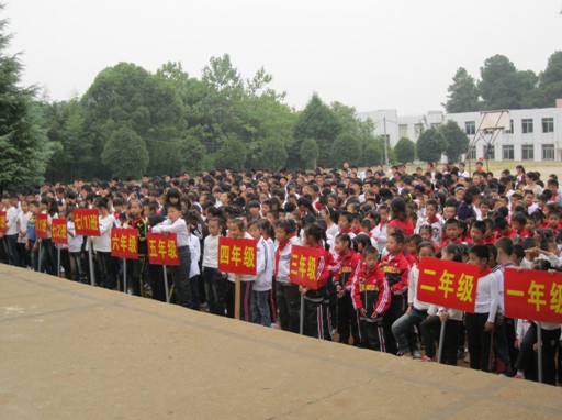 首先进行的是广播体操比赛。在雄壮的运动员进行曲中,一个个班列着整齐的队伍,迈着矫健的步伐,依次通过主席台。灿烂的阳光下,旗帜、队伍、口号,形成了一道道喜人的风景,把健康快乐的情绪感染给了运动场上的每一个人。