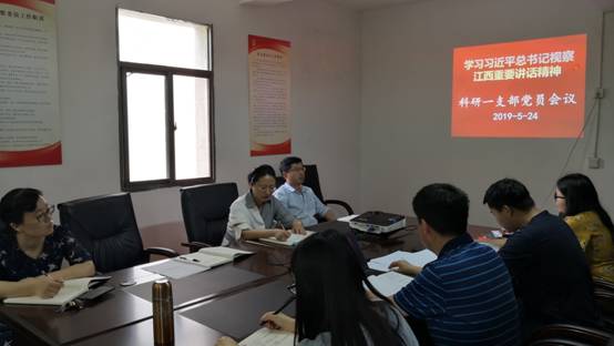5月24日下午,院科研一支部在支部活动室召开学习习近平总书记视察江西重要讲话精神专题的支部党员大会,支部书记朱培林主持会议,支部在院党员参加。
