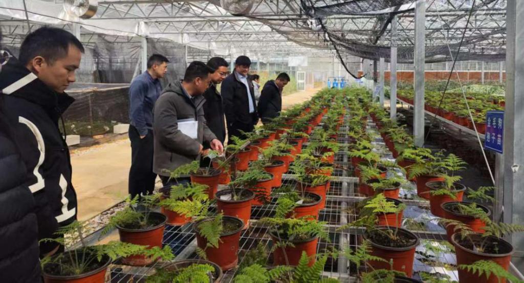 学习和座谈结束后,两个支部党员共同参观了院百草园药用植物种质基地和相关实验室,药材所党支部书记邓绍勇同志详细介绍了国家二级重点保护植物金毛狗蕨的孢子人工扩繁技术要点及取得的显著成效,让在场党员直观了解濒危野生植物保护的科研实践。