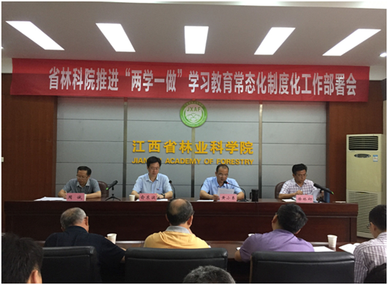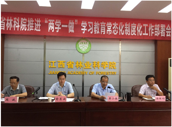 2017年6月6日,省林科院召开“两学一做”学习教育常态化制度化动员部署会,会议传达学习了全省“两学一做”学习教育常态化制度化动员部署会和省委鹿心社书记讲话精神,对全院推进“两学一做”学习教育常态化制度化工作进行了全面部署。会议由院长俞东波主持,院党委副书记徐林初对全院“两学一做”学习教育常态化制度化工作进行了部署,院党委书记黄小春作了动员讲话,院领导周诚出席,院各党支部书记及支委、机关全体党员、各单位(部门)主要负责人共60余人参加了本次会议。