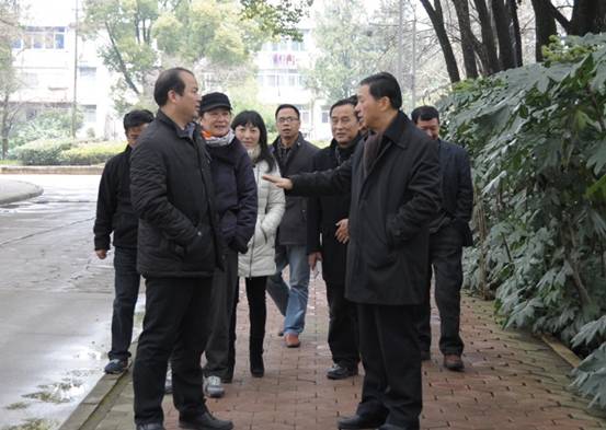 2016年1月29日上午,省林业厅党组书记、厅长阎钢军携副厅长罗勤、厅科技处处长胡加林、厅离退休干部处处长刘伟成一行,轻车简从,来到我院走访慰问科技人员,并考察了我院创新大楼建设与庭院道路改造、庭院环境改善情况,院领导黄小春、徐林初、周诚陪同。