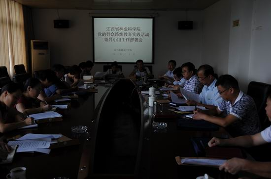 7月11日下午,我院党的群众路线教育实践活动领导小组在综合楼三楼会议室召开工作部署会,传达省委在南昌召开的全省党的群众路线教育实践活动动员大会和省委督导组、联络组(农口)会议精神,部署全院党的群众路线教育实践活动有关工作,宣读了全院党的群众路线教育实践活动实施方案、活动安排意见、调研方案及成立领导小组、办事机构等有关文件,明确了责任分工。