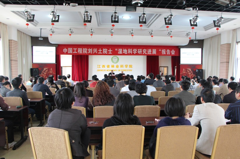 4月16日上午,中国工程院刘兴土院士“湿地研究及其生态工程建设的若干问题”学术报告会在我院召开。中国林科院张守功院长、储富祥副院长,江西省林业厅阎钢军厅长、邱水文副厅长,我院黄小春院长、林小凡副院长、徐林初副书记、江香梅总工出席。参加本次学术报告会的还有院士助手文波龙、中国林科院竹子中心主任于辉、中国林科院亚林中心主任李江南、党委书记夏良放以及江西省林业厅、江西财经大学、南昌大学、江西师范大学、江西农业大学、江西科技师范大学、江西省气候变化检测评估中心、我院等单位的行业管理人员和科研人员共计150余人。