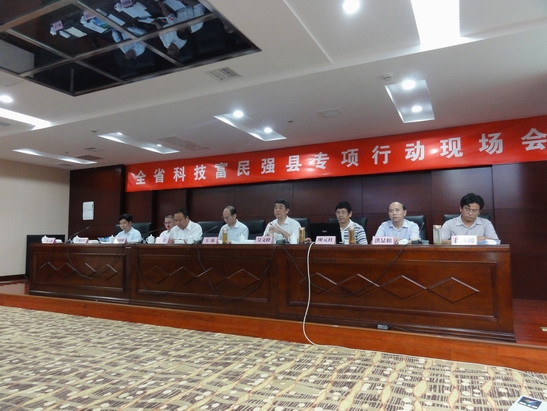 2012年9月26日,全省科技富民强县专项行动现场会在景德镇市召开,实施该计划项目的县(市)科技局局长、龙头企业负责人及省直有关单位共120多人参加会议。会议现场考察了浮梁县“优质茶生产技术集成示范与推广”项目的良种繁育示范苗圃、生态茶园和茶叶加工生产厂,图版展示了部分项目专项行动取得的丰硕成果,典型发言及书面总结交流了科技富民强县专项行动实施经验与取得的成绩,省科技厅王海厅长在最后讲话,肯定了我省科技富民强县专项行动讲话取得的成绩,提出了今后进一步加强科技富民强县工作的意见。