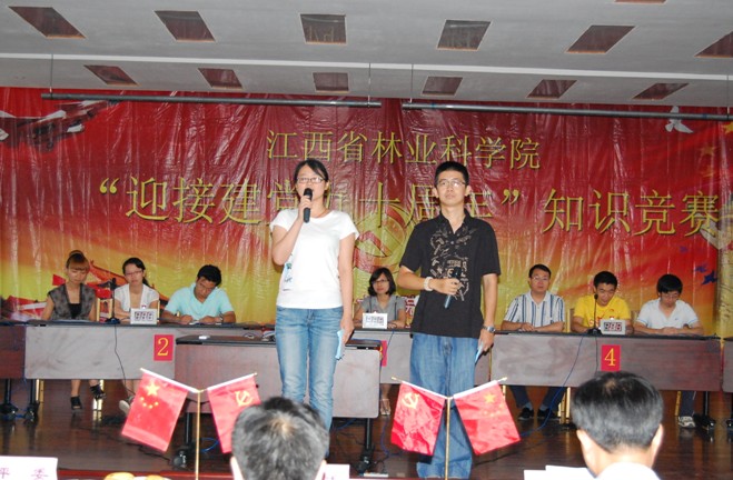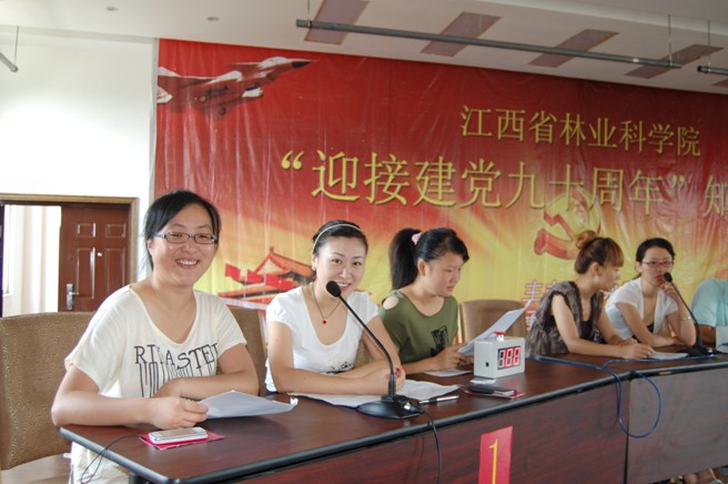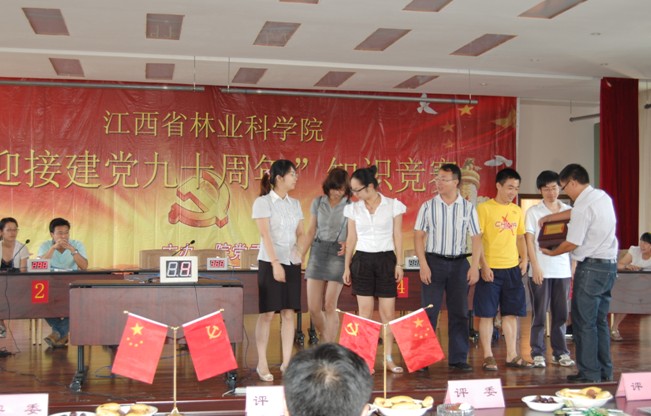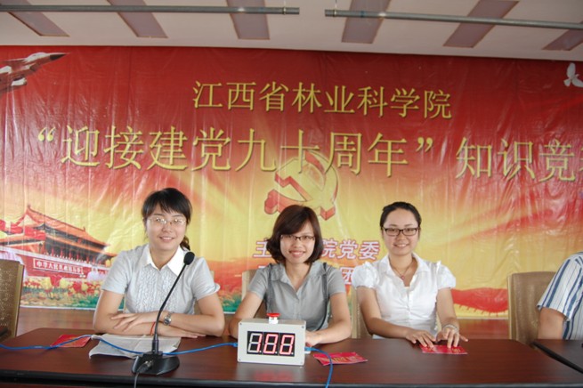 2011年7月4日上午,由院党办和院团委共同举办的庆祝建党90周年党史知识竞赛活动在院综合楼四楼顺利举行。来自各党支部的15名参赛选手分为5个队展开激烈角逐。比赛邀请了我院副院长林小凡、副院长周诚、纪检副书记王文俊、工会主席沈冬根、人事处副处长郑育桃担任评委。