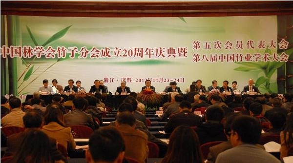 11月22日-24日,中国林学会竹子分会成立20周年庆典大会暨第五次会员代表大会及第八届竹业学术大会在浙江诸暨隆重召开。中国林学会竹子分会主任委员、浙江省林业厅厅长楼国华,中国林学会常务副秘书长李岩泉,中国工程院院士张齐生,中国林科院副院长刘世荣,国家林业局对外合作项目中心副主任吴志民,中国林科院首席科学家傅懋毅等出席开幕式,竹子分会的常委、委员和会员代表,全国主要产竹区林业管理部门的领导,来自国内外多所林业大学的学者和研究生代表共300余人参加大会。