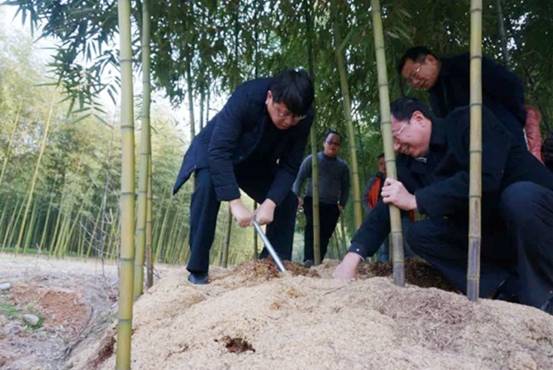 赵金成还在专家的指导下进行了挖笋体验活动,他指出,雷竹产业是省委省政府“十三五”规划重点发展的林下经济产业之一,更是弋阳县的富民产业。省林科院竹类科技人员以省科技特派团工作为契机,将科学研究与科技推广有机结合,科学指导弋阳县雷竹生产,为当地雷竹产业发展做出了很大贡献。希望县委县政府今后大力支持科技特派团的工作、支持富民产业的发展,加大对省林科院在良种选育及规范化栽培技术研究及推广等工作的支持力度。