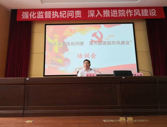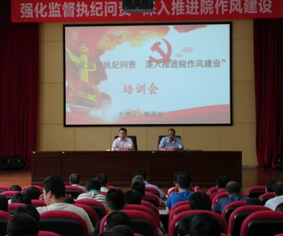 7月13日下午,“强化监督执纪问责 深入推进院作风建设”培训会在院创新大楼二楼阶梯会议室召开,院党委书记黄小春同志主持会议,省纪委省监委驻省林业厅纪检监察组副组长熊源发同志应邀出席会议并作报告,其他在家院领导、院属各单位(部门)主要负责人及干部职工共150余人参加会议。