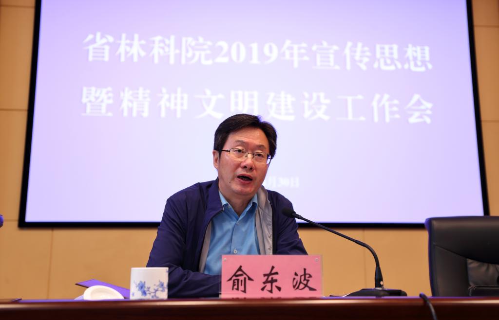 俞东波要求,全院上下要高举思想旗帜,不断推动习近平新时代中国特色社会主义思想学习宣传贯彻向纵深发展,持续深化理论武装。要强化责任担当,牢牢掌握意识形态工作领导权,切实履行好意识形态工作的政治责任,不折不扣地把党的思想宣传、意识形态工作方针落到实处。要聚力工作重点,聚焦我院林业科研特点、亮点,做好选题策划,不断强化正面宣传,唱响新时代主旋律。要加强文化建设,把培育和践行社会主义核心价值观引向深入,开展积极向上的群众性体育文化娱乐活动,推动精神文明创建。要切实扛起政治责任,增强政治敏锐性和政治洞察力,强化责任感和自觉性,坚决打好打赢防范化解重大风险攻坚战,积极开创我院宣传思想和精神文明建设工作新局面。