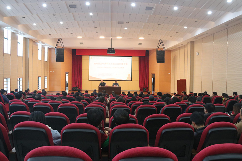 许立教授以《始终坚定中国特色社会主义制度自信——学习贯彻党的十九届四中全会精神》为题,从十九届四中全会的重大意义、十九届四中全会《决定》的核心要义、为什么要坚持和完善中国特色社会主义制度、如何推进国家治理体系和治理能力现代化等四个方面,结合多年教学研究经验与扎实的理论功底,对全会精神进行了深入解读和生动诠释。