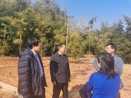 郑郁善一行实地考察了我院竹类国家林木种质资源库,听取了竹类所副所长王海霞关于我院资源库建设、竹类种质资源收集、保护及利用等方面的介绍。双方就赣闽两地竹类种质资源保护、竹林培育等方面进行了深入交流,并就种质资源及学术交流、人才培养等方面的长期合作达成了初步意向。
