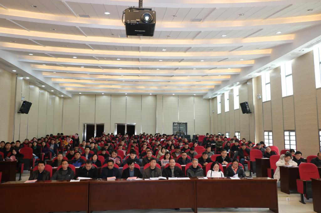 1月20日下午,我院在创新大楼二楼阶梯会议室召开2019年度工作总结暨表彰大会。院党委书记俞东波就2019年工作总结和2020年主要工作打算向大会作了报告,院长杨杰芳主持会议,副院长周诚、副院长高璜宣读了有关表彰决定,全院干部职工近190余人参加大会。