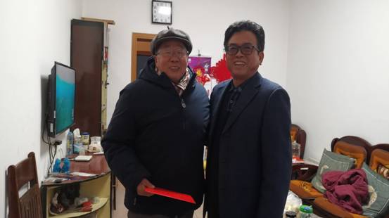 杨杰芳、周诚一行来到左家文、刘兴邦等老同志及劳模家中,详细了解他们的生活、身体近况,感谢他们为院林业发展殚精竭虑、无私奉献的精神,并送上节日的祝福。