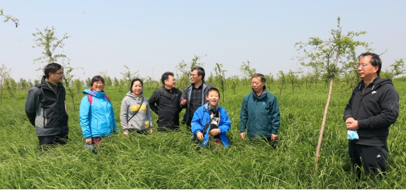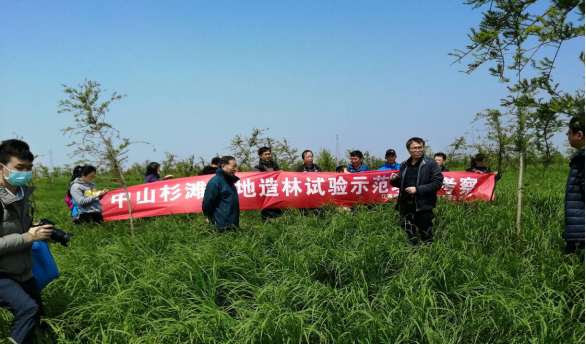 在鄱阳湖象湖洲,罗坤水研究员介绍了中山杉林栽种过程、规模、生长变化及对湖洲滩地生态修复功能。据介绍,该中山杉范林于2014年起开展试验,至今已发展到500多亩的规模,虽经历了每年洪水期全树没顶淹水,淹水深度超过3m,但仍生长旺盛,年均胸径生长超1cm,树高生长超30 cm。通过栽种中山杉改变了滩涂地生态环境,抑制了钉螺孳生,控制了血吸虫病传播,实现了经济与生态的有机结合。