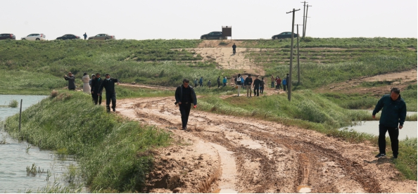 新建区昌邑乡人大主席陶绪吉介绍廿四联圩猴子脑防洪堤建设情况