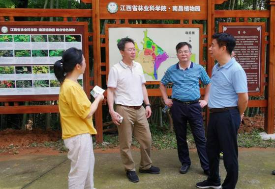 7月21日,省科学院党组书记、院长熊绍员,省科学院党组成员、总工程师古和今等一行到省林科院南昌植物园调研,省林科院党委书记俞东波、院长杨杰芳、副院长高璜陪同调研。