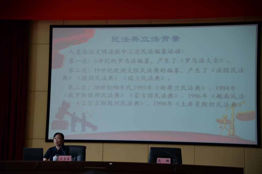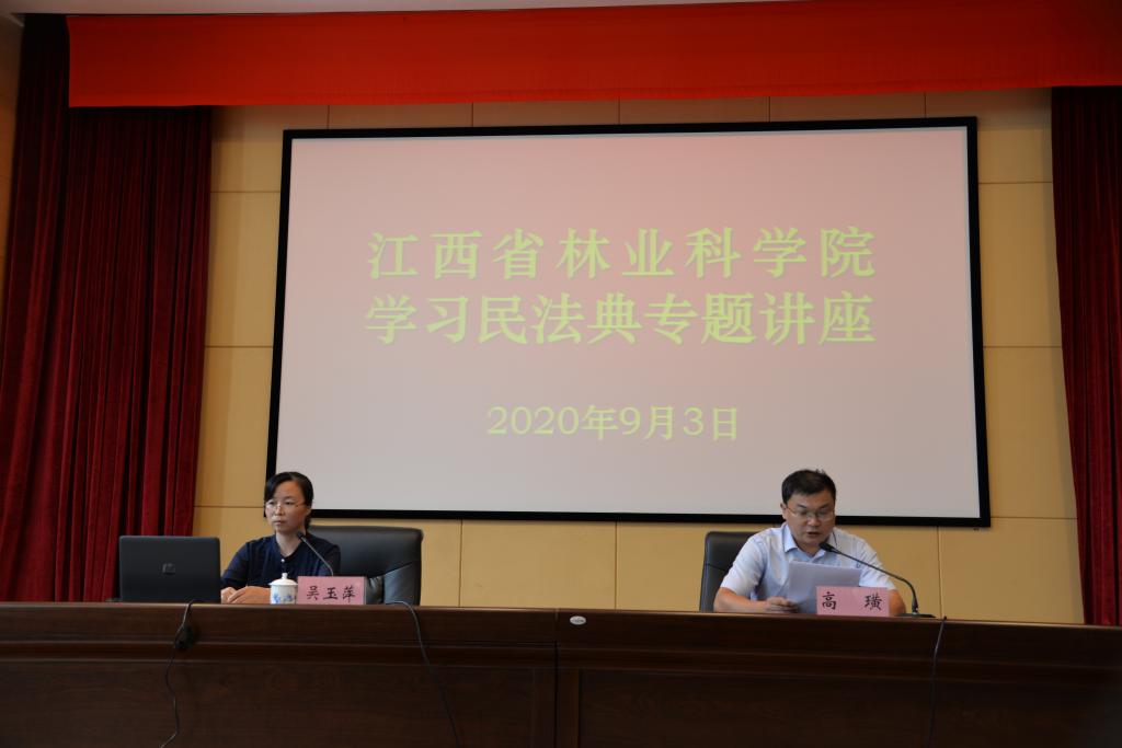 9月3日下午,我院在创新大楼阶梯会议室举办了民法典专题讲座,讲座邀请到江西省高级人民法院四级高级法官吴玉萍授课。院长杨杰芳、党委副书记徐林初出席讲座,副院长高璜主持讲座并讲话,各部门干部职工参加讲座。
