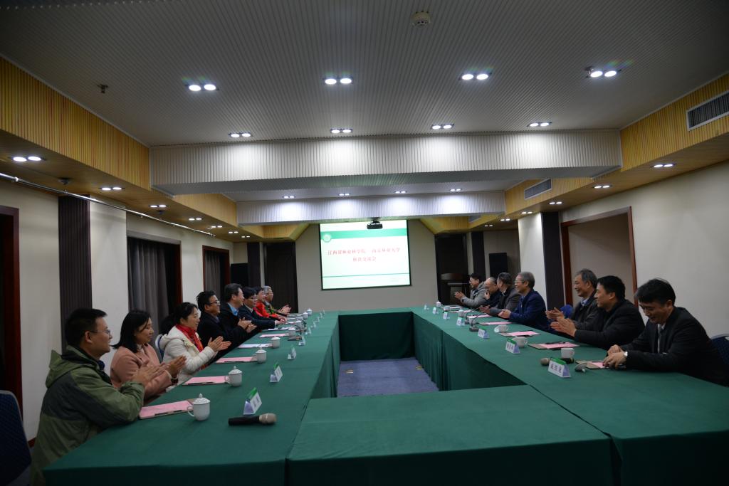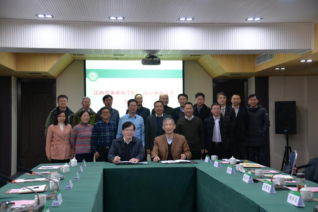 江西省林科院党办(人事处)、行办、科管处、生物所、林产所、经济林所负责同志和南京林业大学党办、科技处、人事处、林学院、材料科学与工程学院、化学工程学院、经济管理学院、生物与环境学院负责同志参加交流座谈会并见证协议签署。