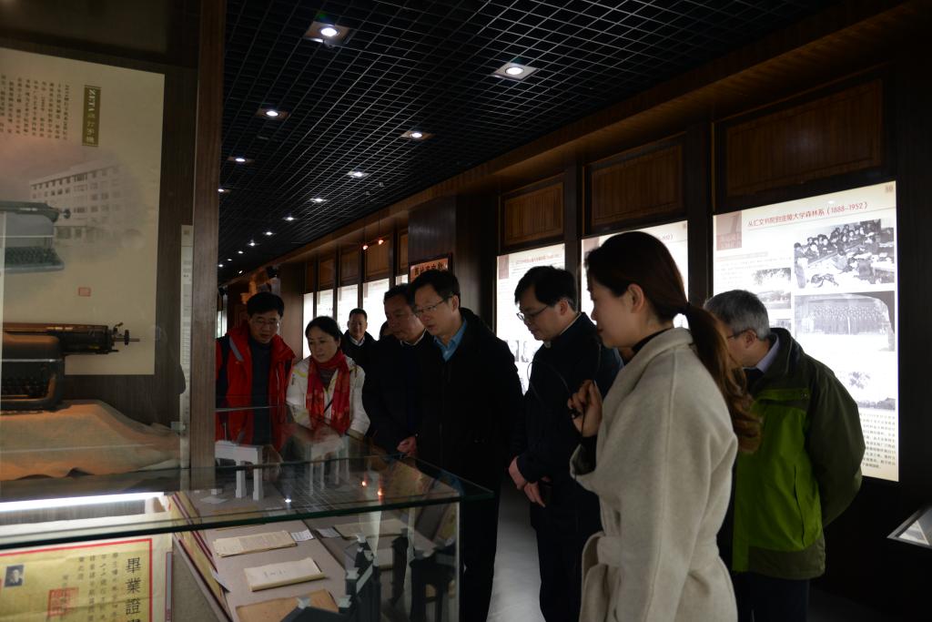 签约前,在南林大党委副书记、副校长刘中亮的陪同下,俞东波、杨杰芳一行参观了南林大校史馆,全面了解了南林大的历史沿革、发展历程、所获成就和远景规划。