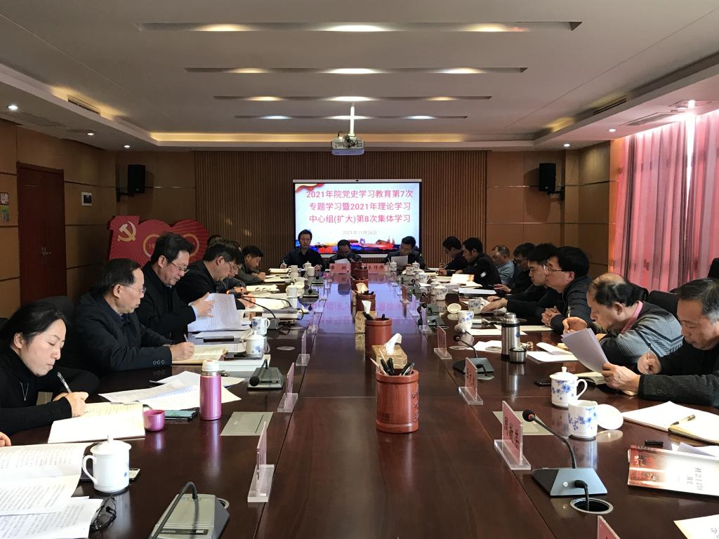 11月26日下午,省林科院党委书记俞东波主持召开了党委理论中心组学习(扩大)会议,围绕党的十九届六中全会和省第十五次党代会精神进行了专题学习研讨,并就抓好会议的学习宣传贯彻落实作出部署。院党委副书记、院长杨杰芳,院党委委员、副院长周诚、高璜,院总工程师龚春参加学习。