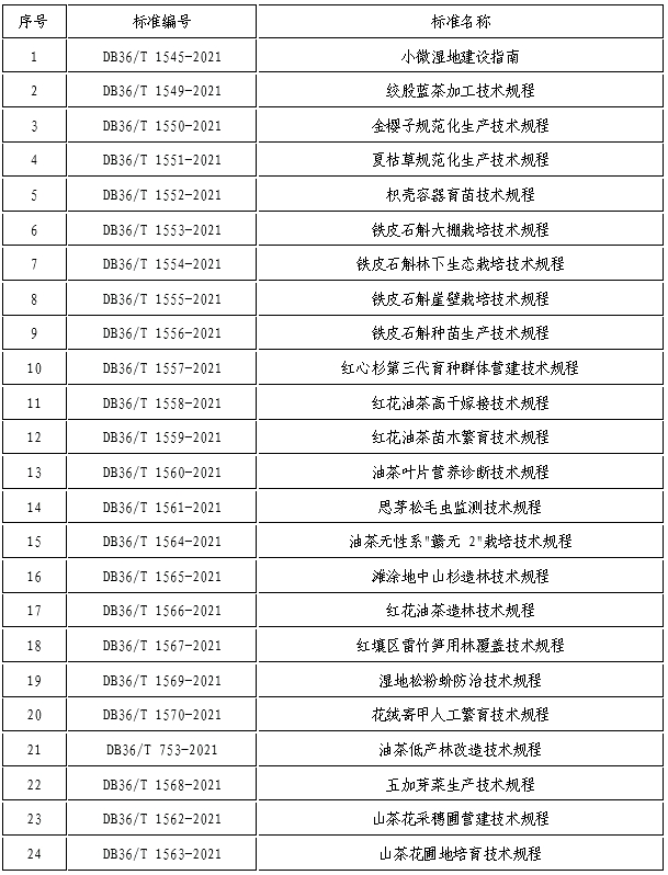 近日,省市场监督管理局发布2021年第8号江西省地方标准的公告,批准了36项省级地方标准,我院起草的24项省级地方标准获批公布,实施日期为2022年6月1日。详细清单如下: