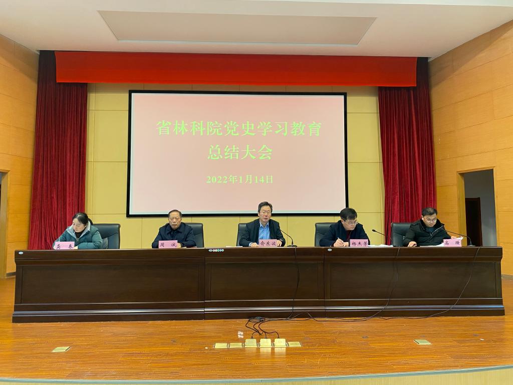 1月14日下午,省林科院召开党史学习教育总结大会,全面回顾总结党史学习教育开展情况、主要成效和经验启示,部署巩固深化党史学习教育成果后续工作。院党委书记、院党史学习教育领导小组组长俞东波出席会议并作总结讲话,院党委副书记、院长杨杰芳主持会议,院党委委员、副院长、院党史学习教育领导小组办公室主任高璜传达中央和省委党史学习教育总结会议精神。院党委委员、副院长周诚,院总工程师龚春出席会议。
