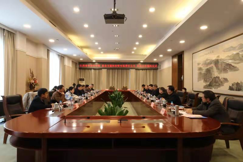 1月21日上午,江西省林业科学院(以下简称“省林科院”)与新余市露林投资有限责任公司(以下简称“市露林公司”)在新余签订合作协议。新余市委副书记钟世富,省林科院院长杨杰芳、副院长周诚、总工程师龚春,市露林公司董事长黄屹东出席签约仪式,新余市政府副市长贺利华主持签约仪式。