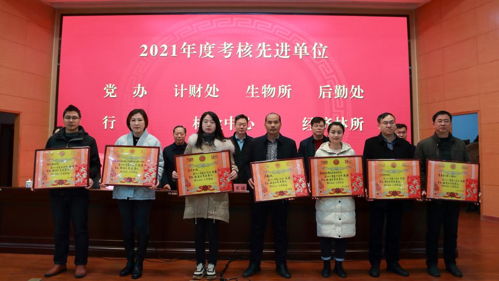 会上,杨杰芳以《凝心聚力 担当实干 奋力推进省林科院高质量跨越式发展》为主题,从党史学习教育扎实开展、获得一批重大荣誉表彰、一批重大创新项目启动、一批科研平台量质双增、一批重大科研成果落地、一批科研人员快速成长、争取科研经费取得新突破、成果转化成效取得新突破、对外合作交流取得新突破、全院环境质量取得新突破等方面,全面总结了全院2021年度工作,既充分肯定了取得的工作成绩,也客观分析了存在的问题,同时对2022年的重点工作任务进行了动员和部署。