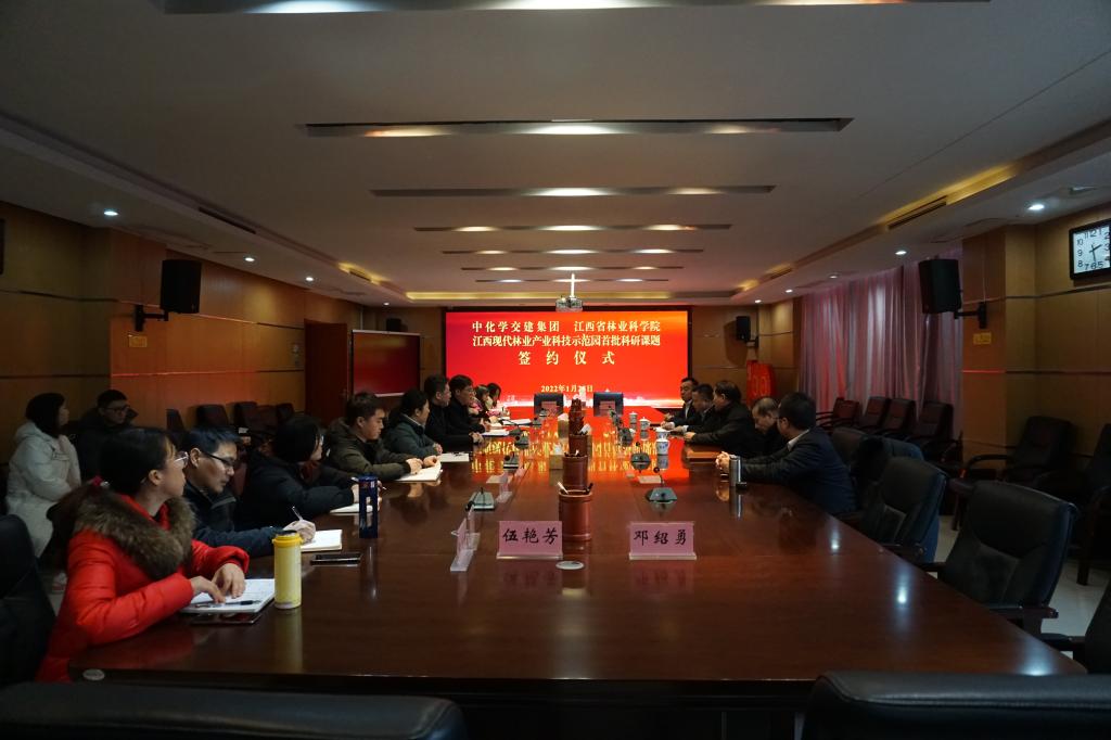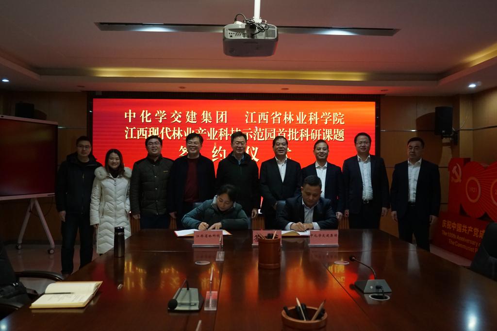 1月28日,江西省林业科学院(以下简称“省林科院”)与中化学交通建设集团有限公司(以下简称“中化学交建集团”)在省林科院签订了江西现代林业产业科技示范园首批科研课题。省林科院党委书记俞东波、院长杨杰芳、总工程师龚春;中化学交建集团党委书记、董事长苏中友,党委副书记、总经理沈周,党委副书记、纪委书记汪万勋等出席签约仪式。