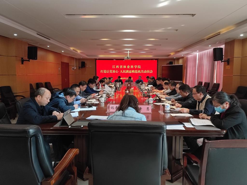 3月11日,省林科院召开打造让党放心、人民满意模范机关动员会,深入学习贯彻党的十九大和十九届历次全会精神,全面落实习近平总书记在中央和国家机关党的建设工作会议上的重要讲话精神,按照省第十五次党代会部署,对全院打造模范机关进行动员部署。院党委书记俞东波主持会议并讲话。院党委副书记、院长杨杰芳,院党委委员、副院长周诚、高璜,院总工程师龚春,院各党支部书记、部门(单位)主要负责人参加会议。省直机关工委组织部三级调研员龙洁到会指导。