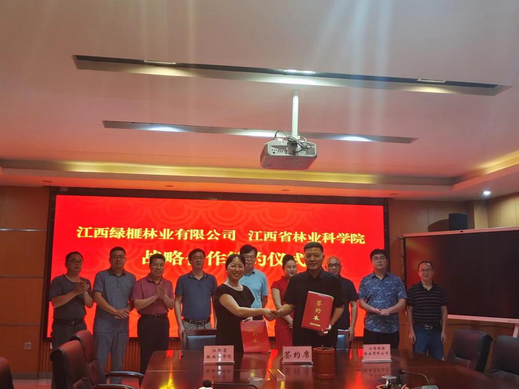 6月17日下午,江西省林业科学院与江西绿榧林业有限公司(以下简称“江西绿林”)在省林科院签订战略合作框架协议。省林科院院长杨杰芳、总工程师龚春,江西绿榧林业有限公司董事长贾民、执行董事蒋琳、副总裁刘兵、财务总监刘蒙梦等出席签约仪式。