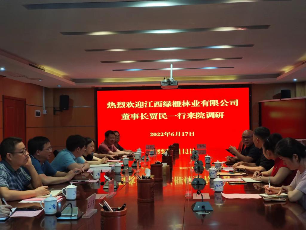 杨杰芳对贾民一行的到来表示热烈欢迎,他简要介绍了林科院总体概况、科研成果、主要优势等方面情况。贾民详细介绍了江西绿林目前发展现状,并希望省林科院在农业种植、林下经济、林业科技、农光互补、产品选择、成果转化等方面给与技术支撑。