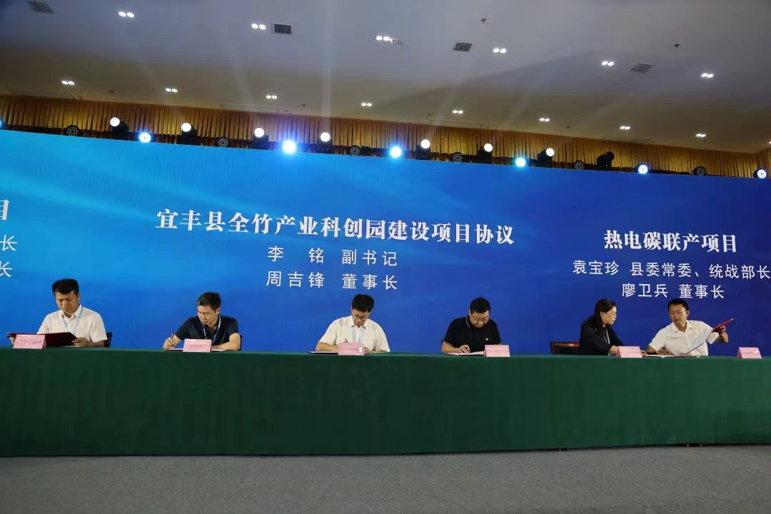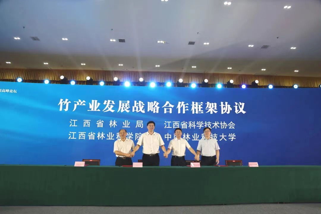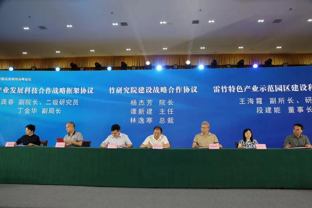 在竹科研成果及技术需求榜单发布暨项目签约仪式上,国家林草局竹子研发中心、浙江农林大学、江西农业大学3个单位以文字形式发布了竹科研成果,中南林业科技大学、江西省林科院等2家单位现场发布了竹科研成果。江西省林业局、江西省科协、江西省林科院、中南林业科技大学共同签署了“竹产业发展战略合作框架协议”;吴义强院士团队与江西筠剑智能装备有限公司签署了“专家工作站建设协议”;江西省林科院、中国林科院亚热带林业实验中心、江西筠剑智能装备有限公司共同签署发“竹研究院建设战略合作协议”;江西省林科院与上饶市林业局签署了“竹产业发展科技合作战略框架协议”;江西省林科院与上饶市农垦实业集团有限公司签署了“雷竹特色产业示范园区建设科技支撑协议”;宜丰县人民政府与江西筠剑智能装备有限公司签署了“宜丰县全竹产业科创园建设项目协议”;宜丰县人民政府与江西筠剑竹业有限公司签署了“热电碳联产项目”和“竹纤维项目”2个协议。