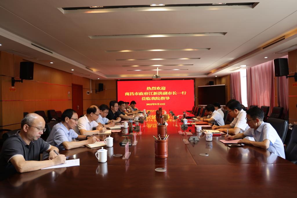 9月13日上午,南昌市政府副市长江新洪率南昌市政府副秘书长杨墉富、市林业局局长宋明、市林业局副局长谢凤俊等一行,到省林科院考察交流。省林科院党委书记俞东波、院长杨杰芳、党委副书记高璜、副院长周诚等陪同考察。