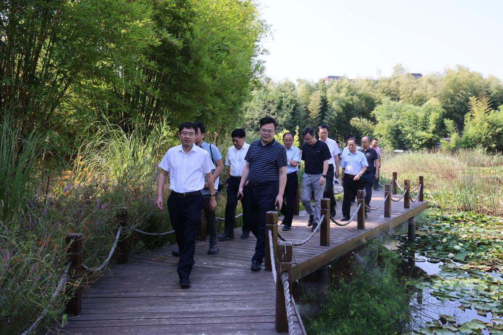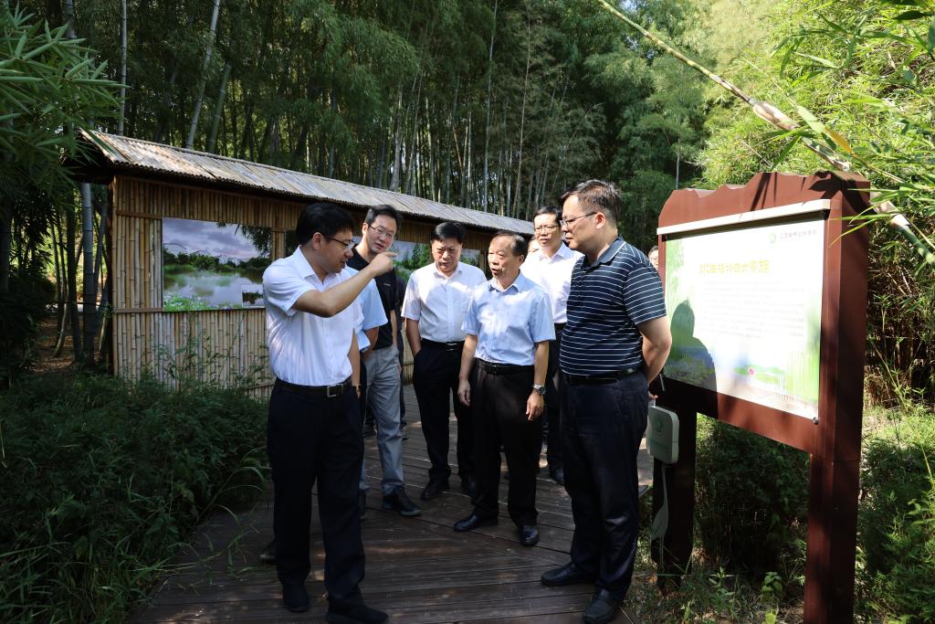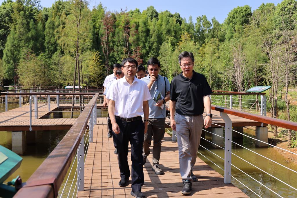江新洪一行先后参观考察了省林科院城郊小微湿地群建设示范点一期、二期、三期工程建设情况。其中,三期工程为省林科院与南昌市林业局共同打造的“小微湿地生态修复及湿地科普进学校项目”。该项目是在南昌市申报国际湿地城市契机下,双方聚焦南昌市森林及湿地碳汇研究、改善农村人居环境工程的小微湿地建设等领域开展合作的一个示范项目,旨在通过双方合作,共同助力南昌实施乡村振兴战略、打造国际湿地城市。该项目完成后,将成为展示湿地生态修复及湿地生态建设的重要窗口。