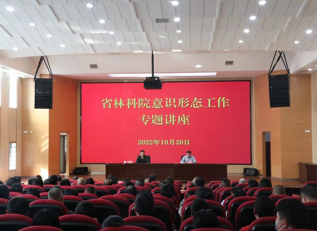 10月20日,省林科院举办意识形态工作专题讲座,邀请省直工委宣传部二级调研员姚刚作辅导报告。院党委书记俞东波、院长杨杰芳和其他在家院领导出席讲座,院党委副书记高璜主持讲座。