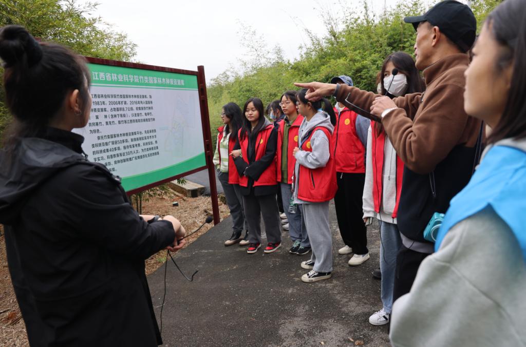 本期培训包括自然教育介绍、科普基地讲解示范、分组讨论模拟讲解等内容。室内授课唐星雨老师通过自身参与自然教育的见闻感悟,引入课程主题,引导参训学员思考自然教育目的意义、了解自然教育的模式以及操作流程;在室外培训时,唐星雨老师利用我院多肉温室大棚、百草园、山茶园、竹种园、天鹅湖等特色科普资源,深入浅出的就鸟类保护、生态修复、植物等如何开展科普讲解进行了示范;小组讨论环节,学员们结合所学的科普讲解知识选取了油茶、竹类等植物尝试进行科普讲解,唐星雨老师就各组的讲解一一进行了点评。
